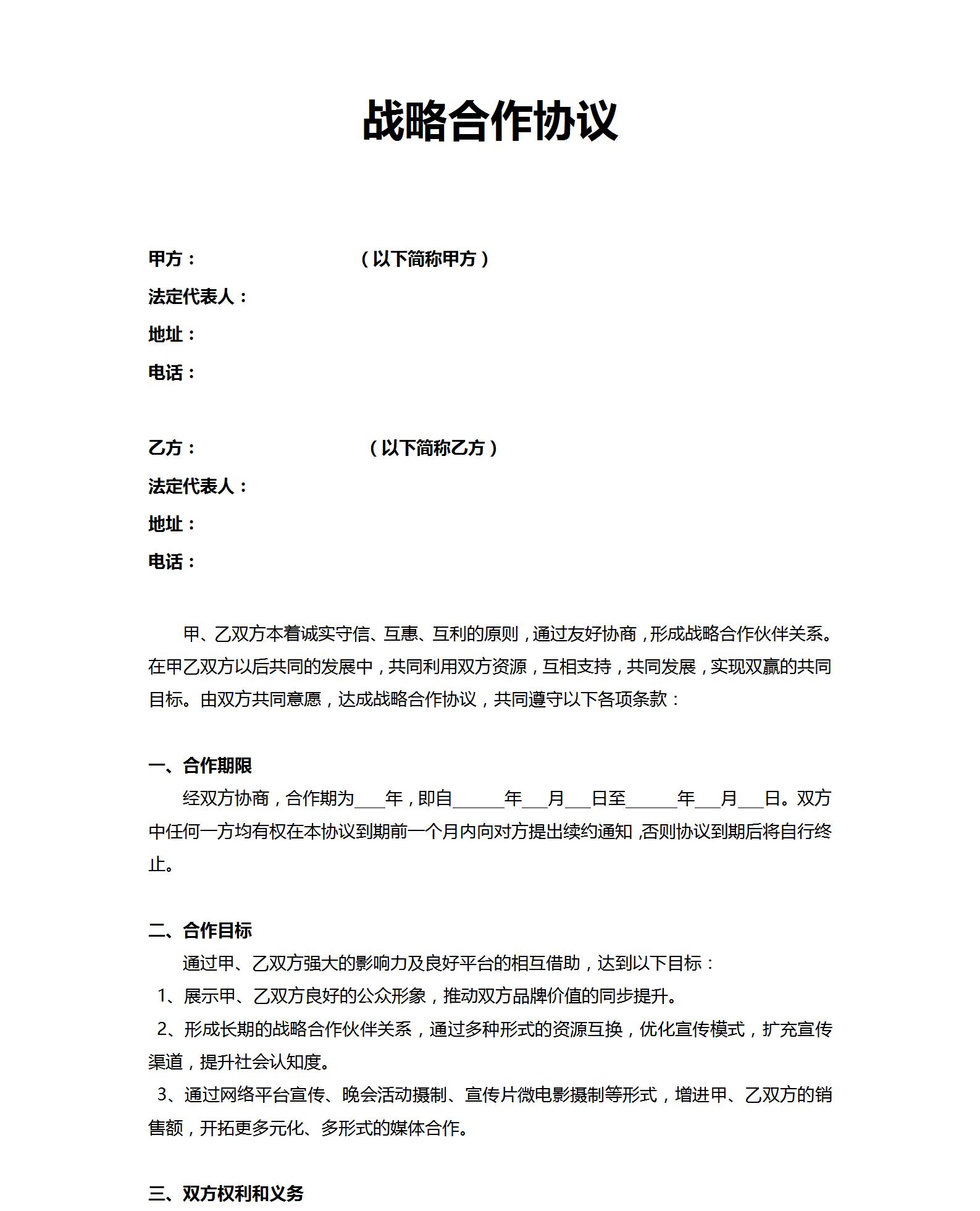 甲、乙双方本着诚实守信、互惠、互利的原则,通过友好协商,形成战略合作伙伴关系。在甲乙双方以后共同的发展中,共同利用双方资源,互相支持,共同发展,实现双赢的共同目标。由双方共同意愿,达成战略合作协议,共同遵守以下各项条款: