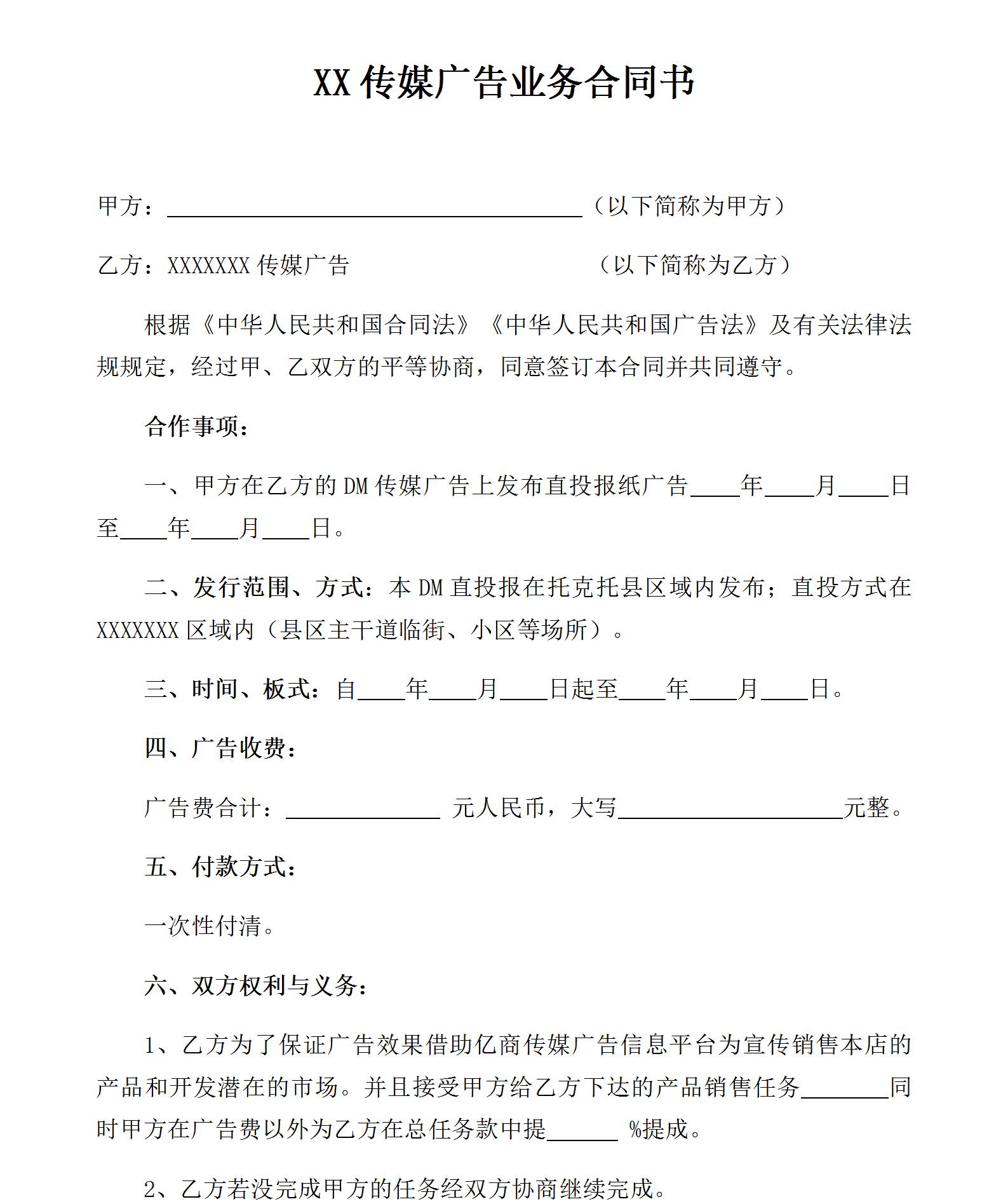 根据《中华人民共和国合同法》《中华人民共和国广告法》及有关法律法规规定,经过甲、乙双方的平等协商,同意签订本合同并共同遵守。